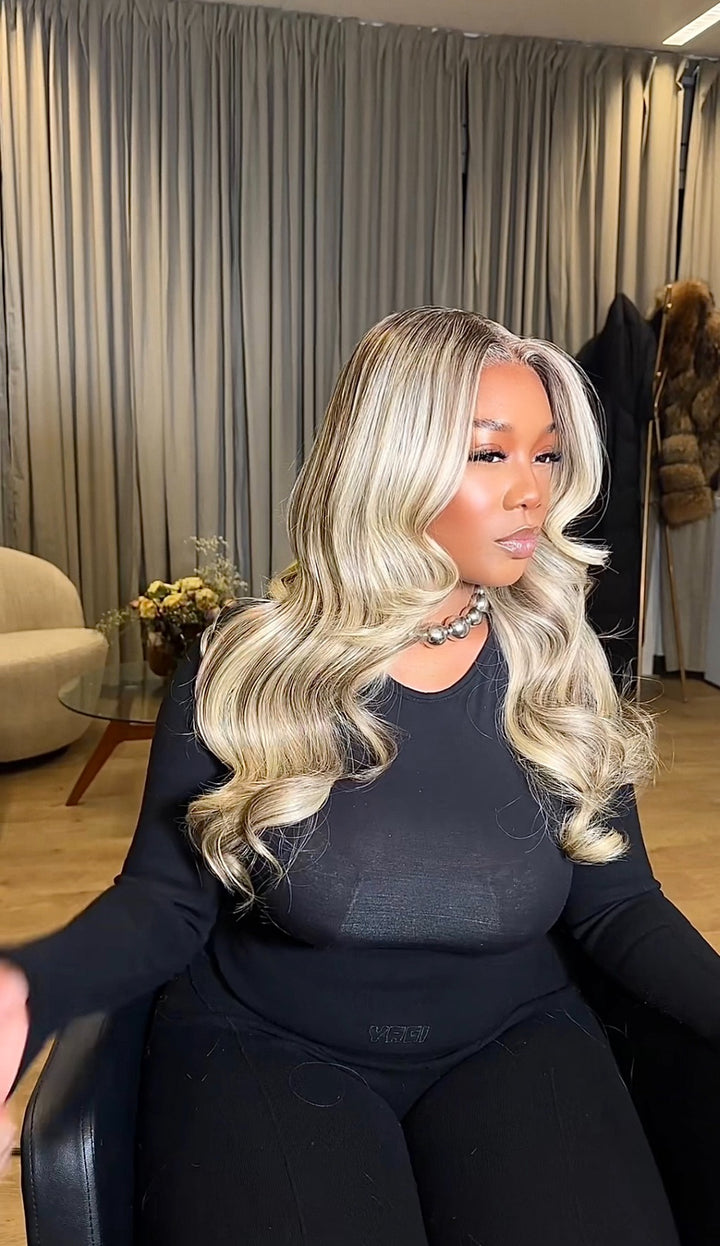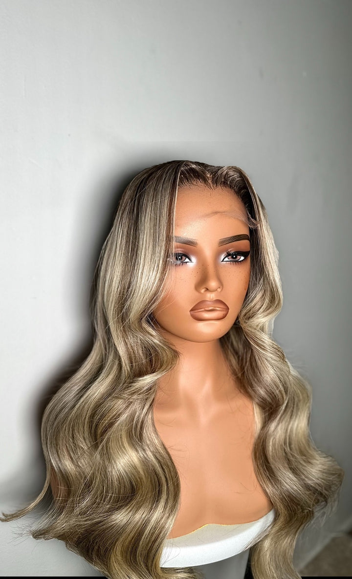 Hair Type: Raw Vietnamese hair Hair texture: Natural straight Lace Type: 5x5 HD Lace Closure Wig Type: Glueless Hair Color: Blond with light brown highlights Density: 250% Bleached knots: yes...