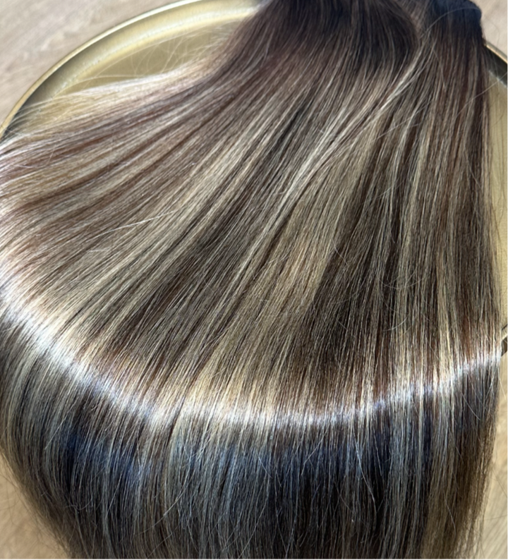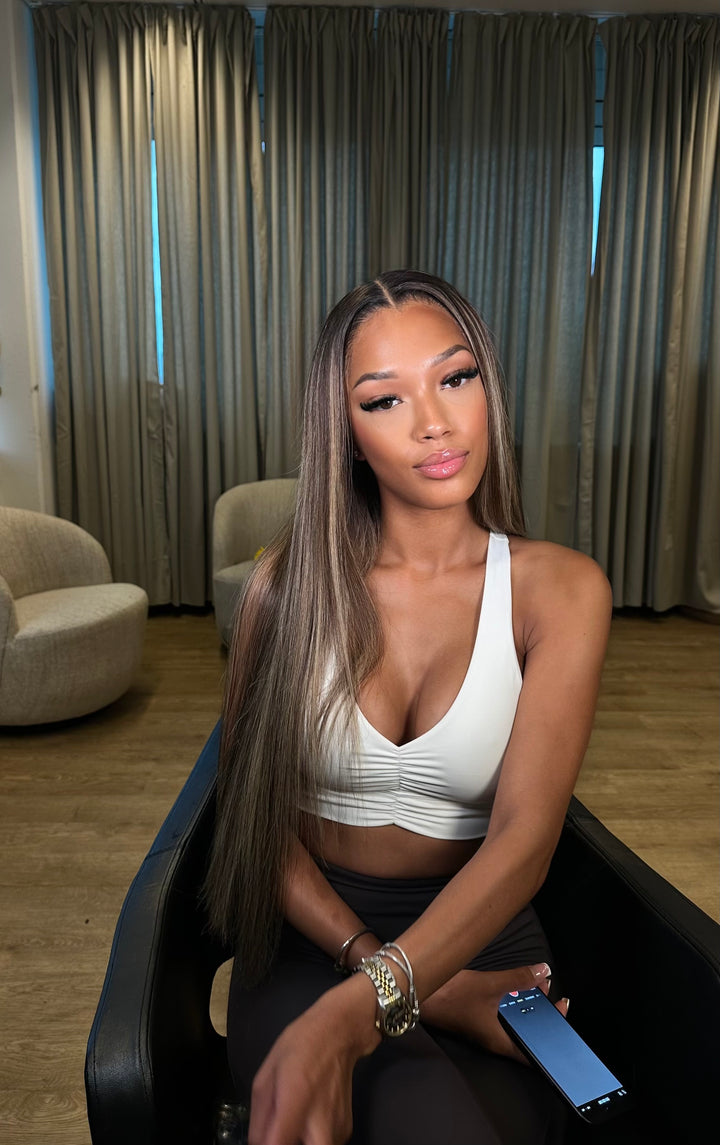 Hair Type: Raw Vietnamese hair Hair texture: Natural straight Lace Type: HD Lace Hair Color: Sun kiss Highlights with dark ombre Wig Type: Custom made Density: 250% Bleached knots: Yes Hairline:...